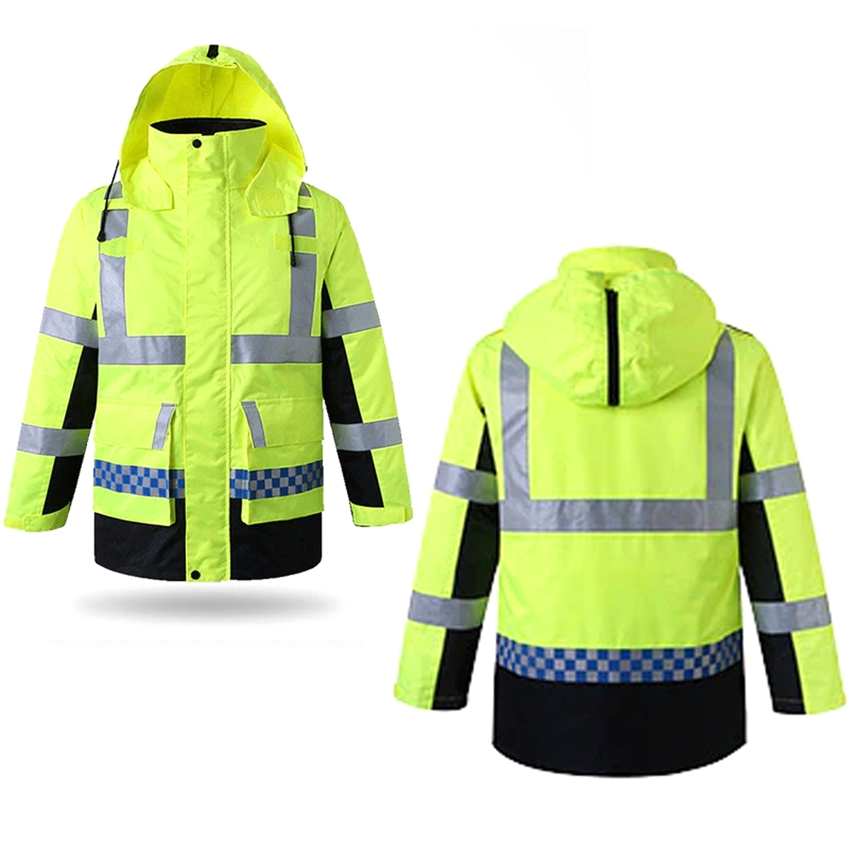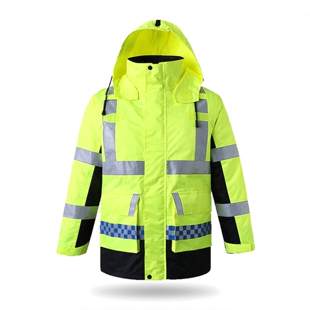 • It has two lower pockets and an adjustable drawstring work wear hood